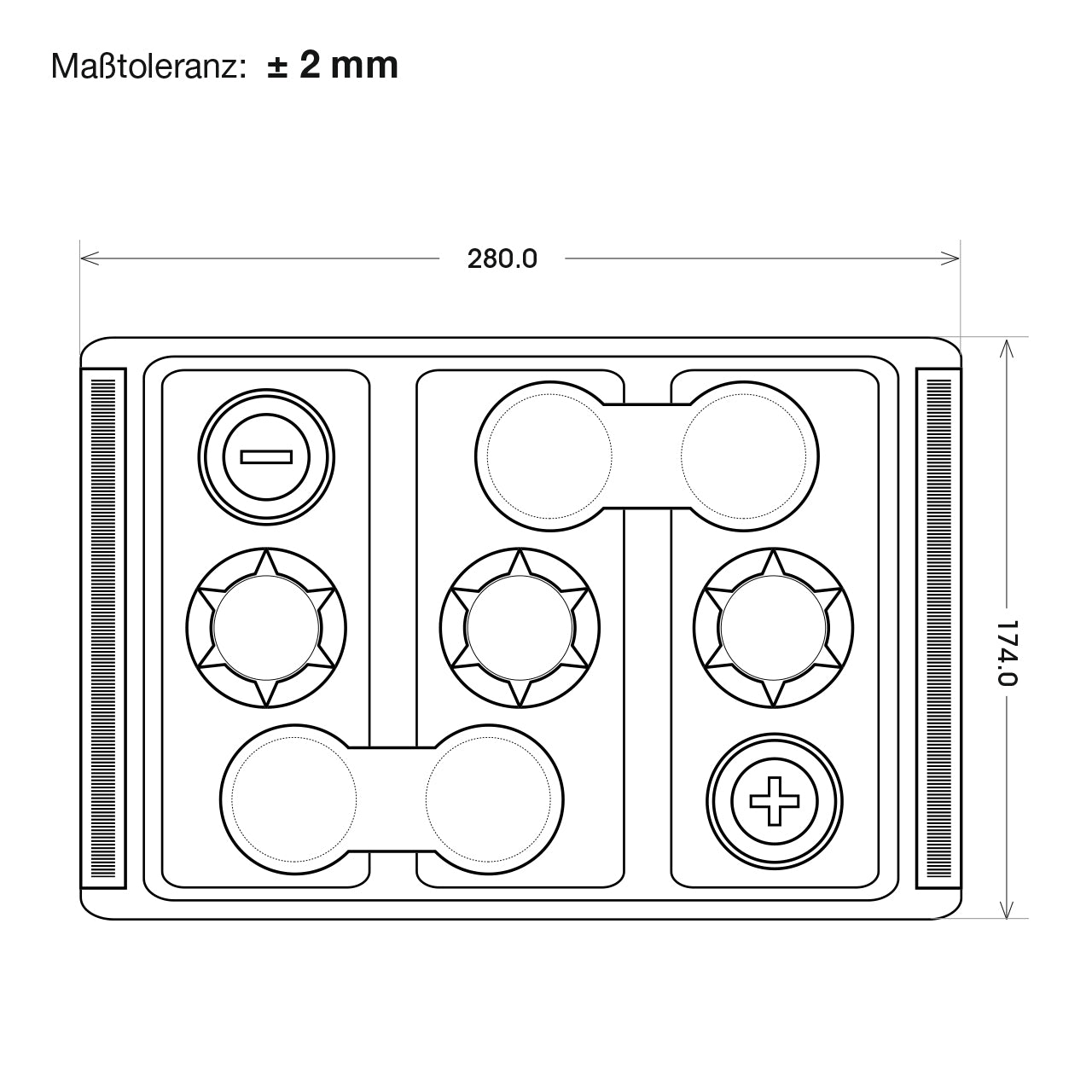 - Maße: 280 mm x 174 mm x 217 mm (L x B x H)